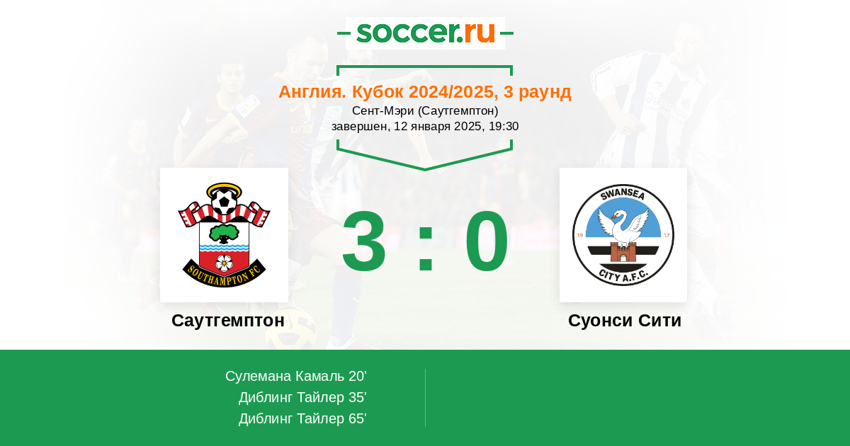 Протокол матча Саутгемптон против Суонси Сити