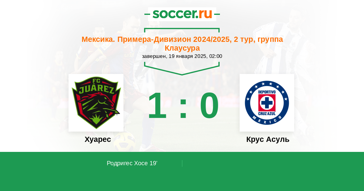 19' (1:0) Родригес Хосе (11) (Оркин Ральф (15))