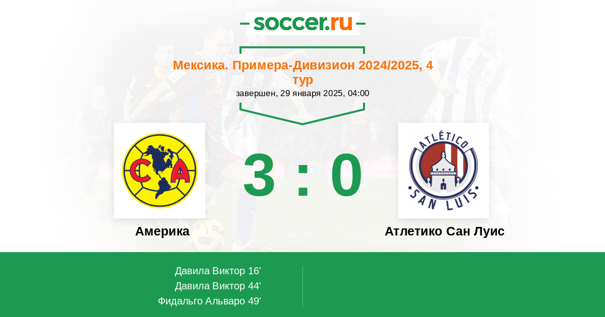 Протокол матча Америка против Атлетико Сан Луис