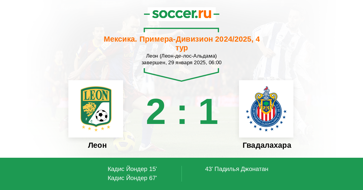 Протокол матча Леон против Гвадалахара