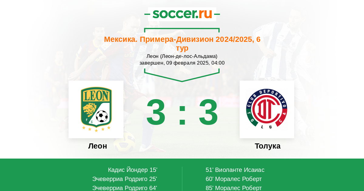 Протокол матча Леон против Толука