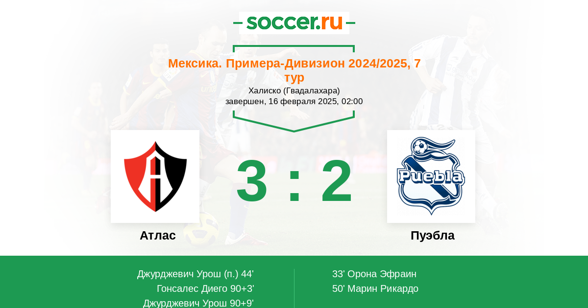 Протокол матча Атлас против Пуэбла