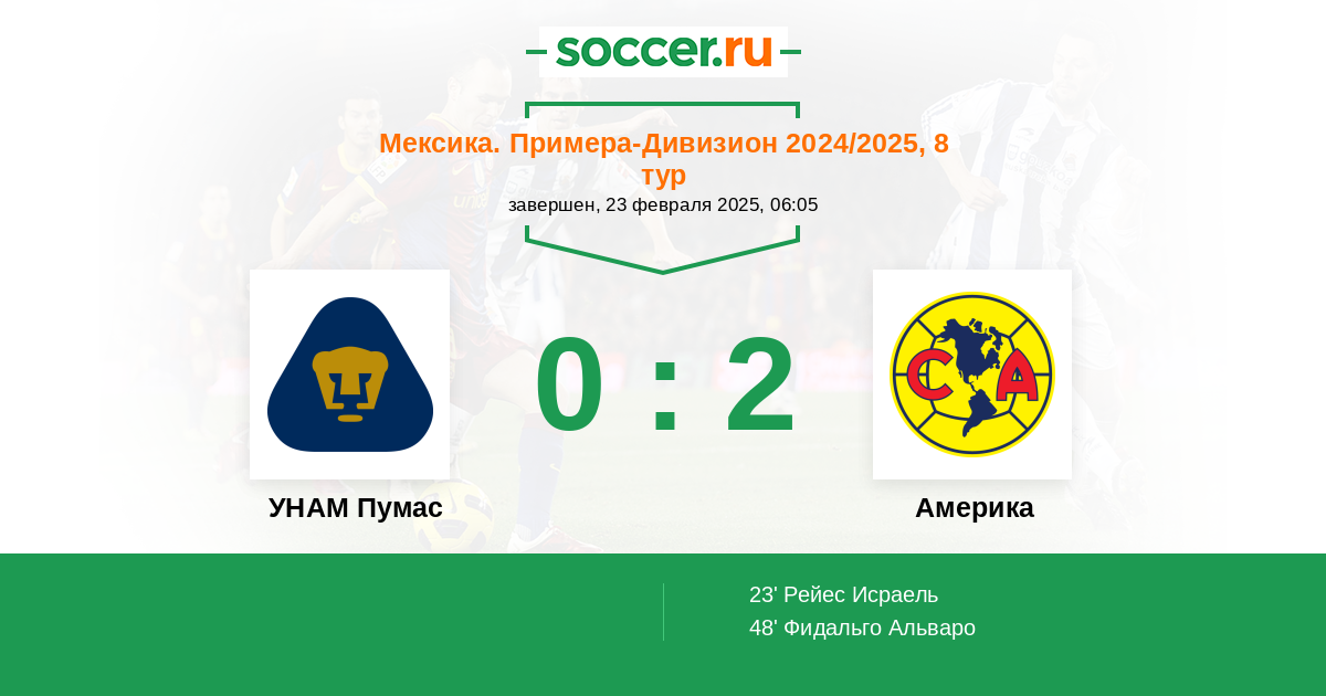 Протокол матча УНАМ Пумас против Америка