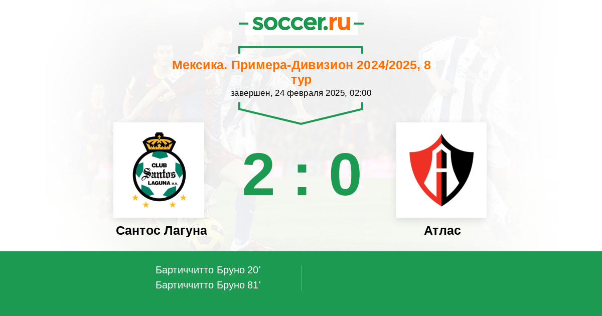 Протокол матча Сантос Лагуна против Атлас