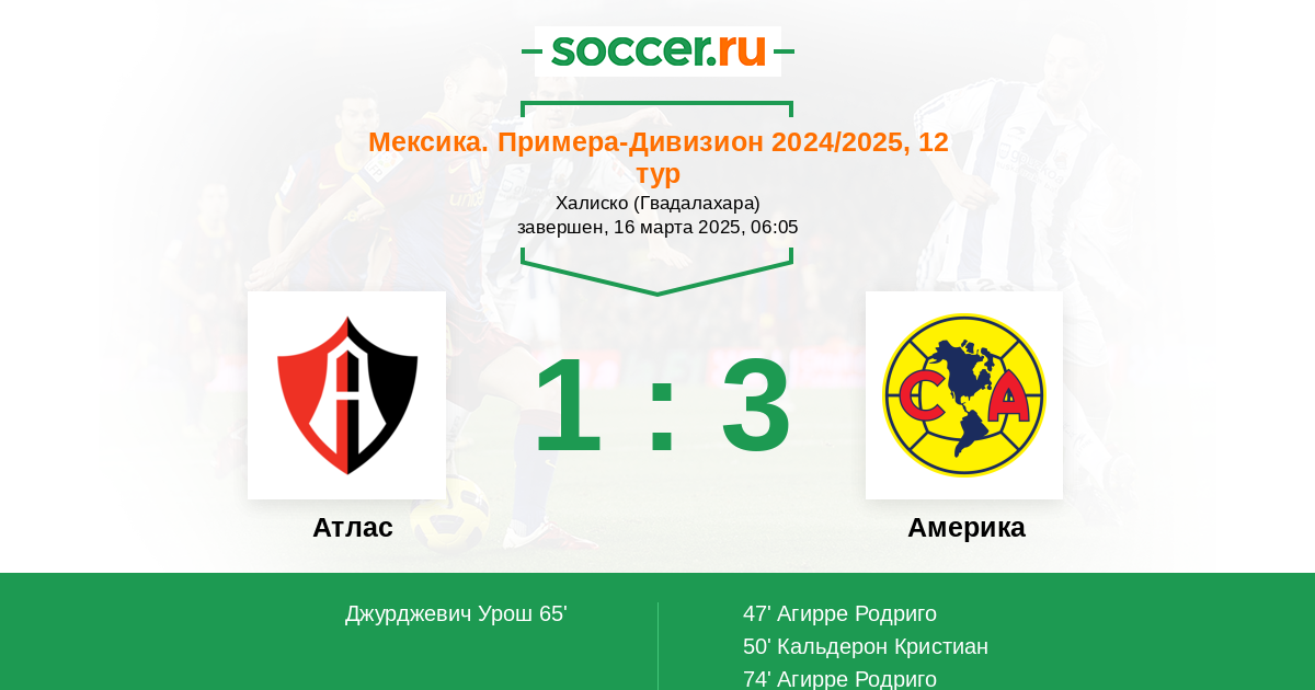 Протокол матча Атлас против Америка