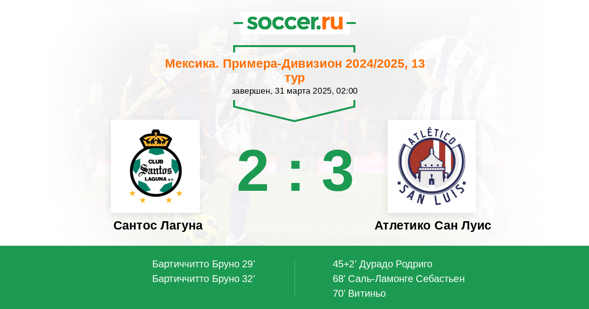 Протокол матча Сантос Лагуна против Атлетико Сан Луис