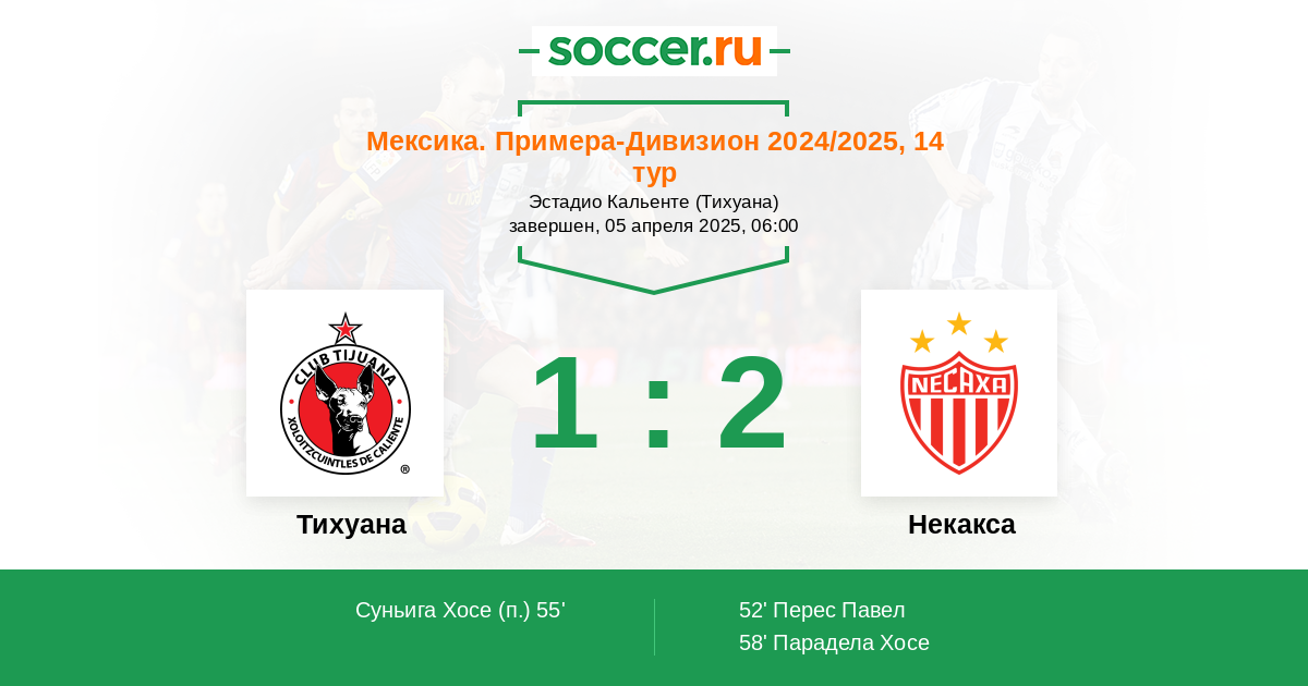 Протокол матча Тихуана против Некакса