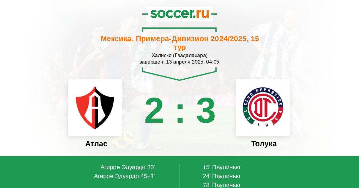 Протокол матча Атлас против Толука