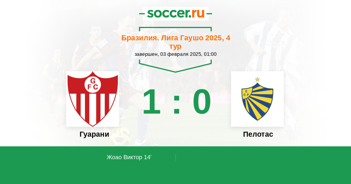 Протокол матча Гуарани против Пелотас