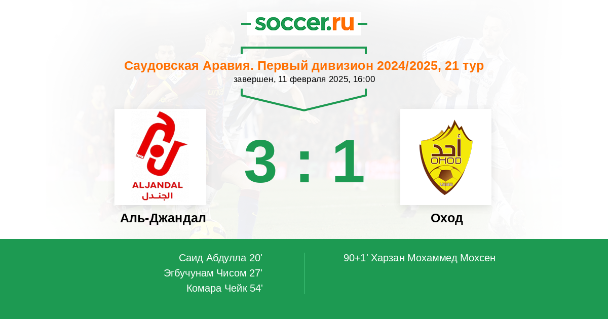 Протокол матча Аль-Джандал против Оход