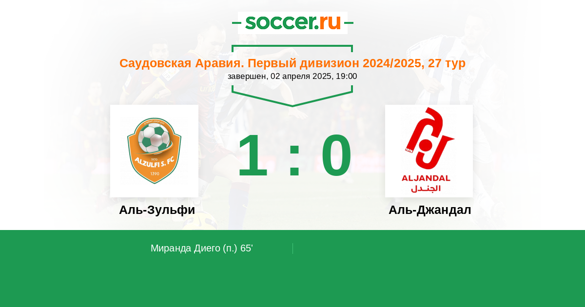 Протокол матча Аль-Зульфи против Аль-Джандал