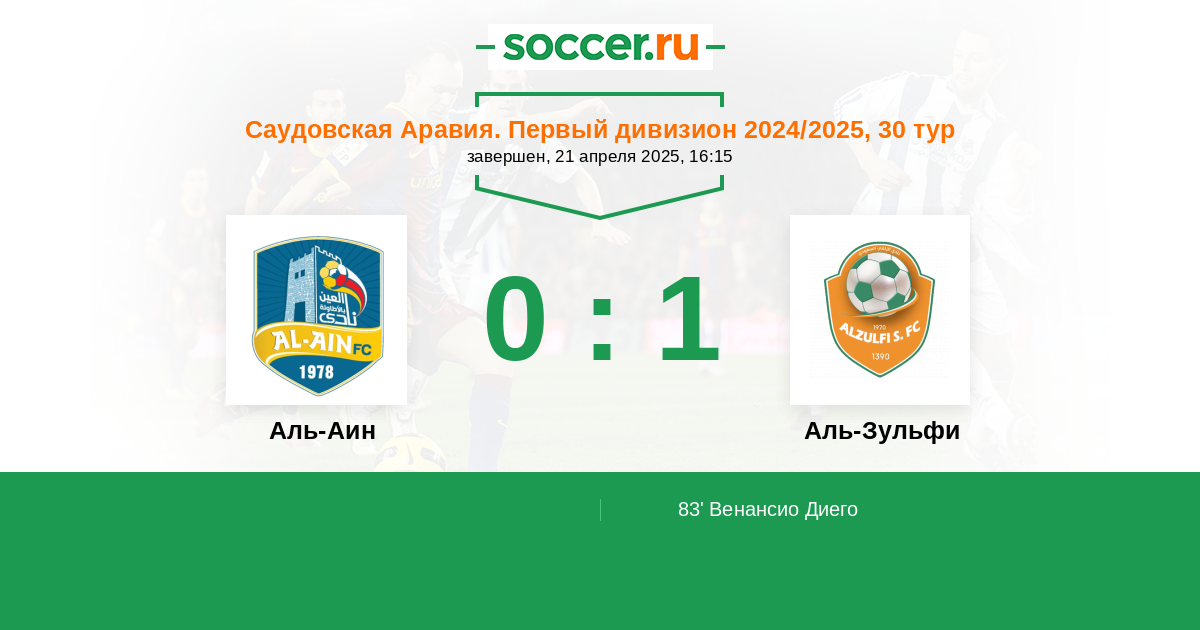 Протокол матча Аль-Аин против Аль-Зульфи