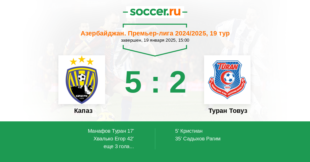 Протокол матча Кяпаз против Туран Товуз