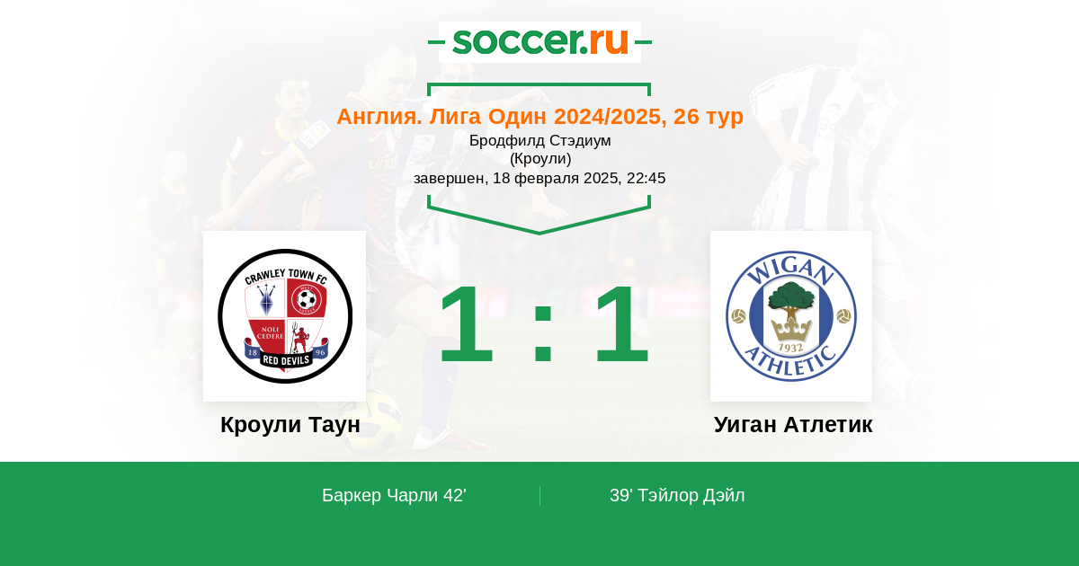 Протокол матча Кроули Таун против Уиган Атлетик