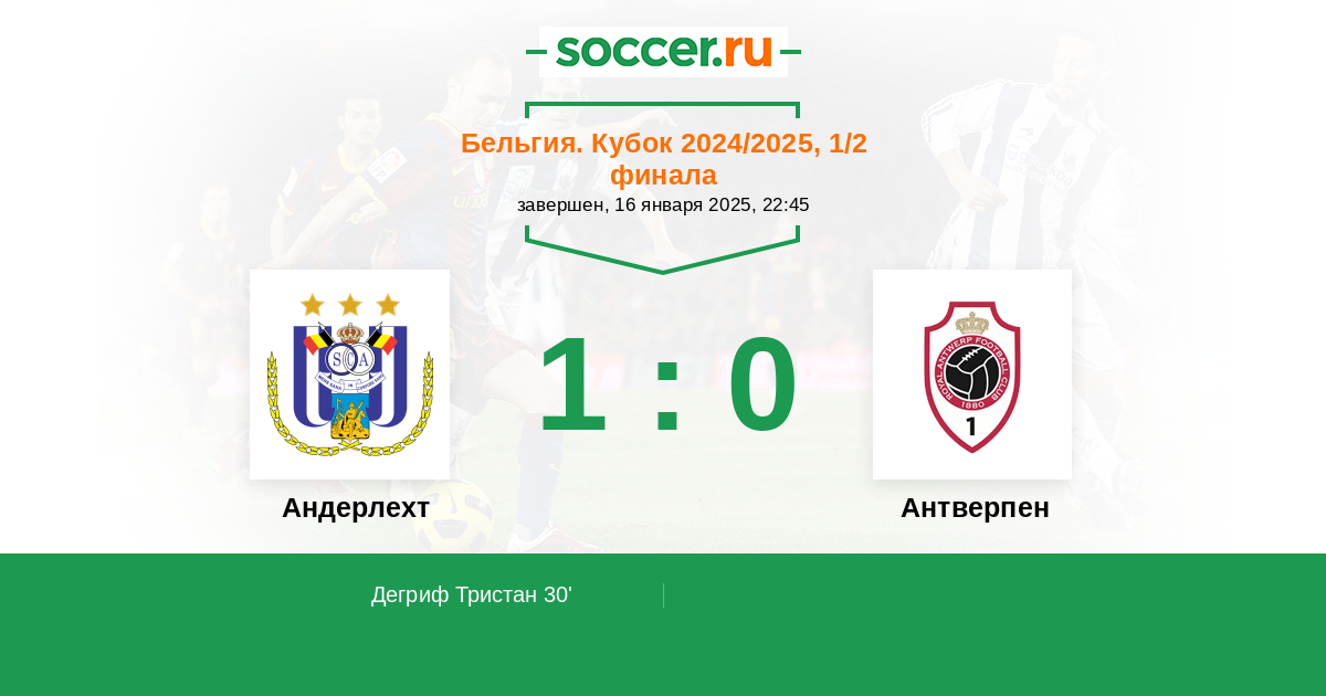30' (1:0) Дегриф Тристан (83) (Эдози Самуэль (27))