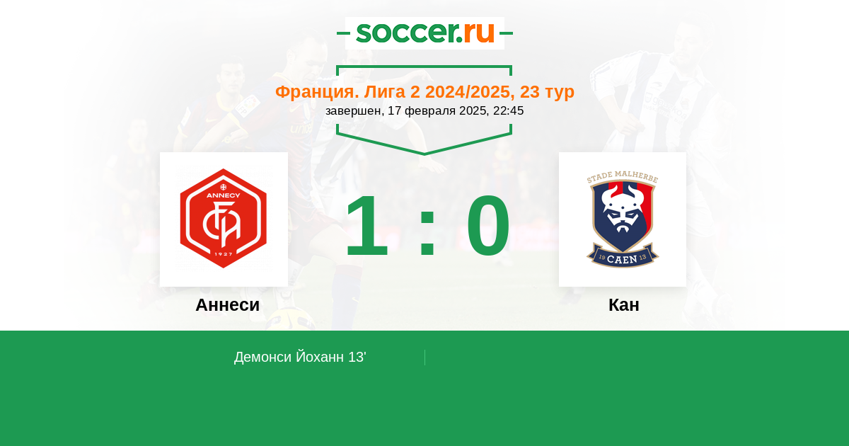 Протокол матча Анси против Кан