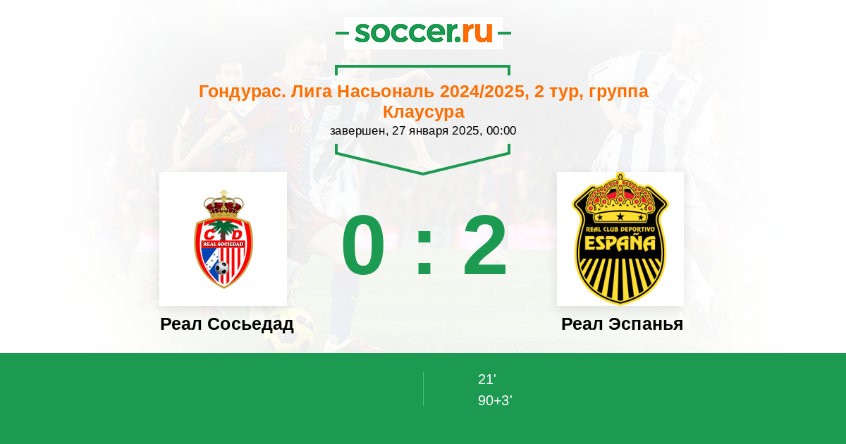 Протокол матча Реал Сосьедад против Реал Эспанья