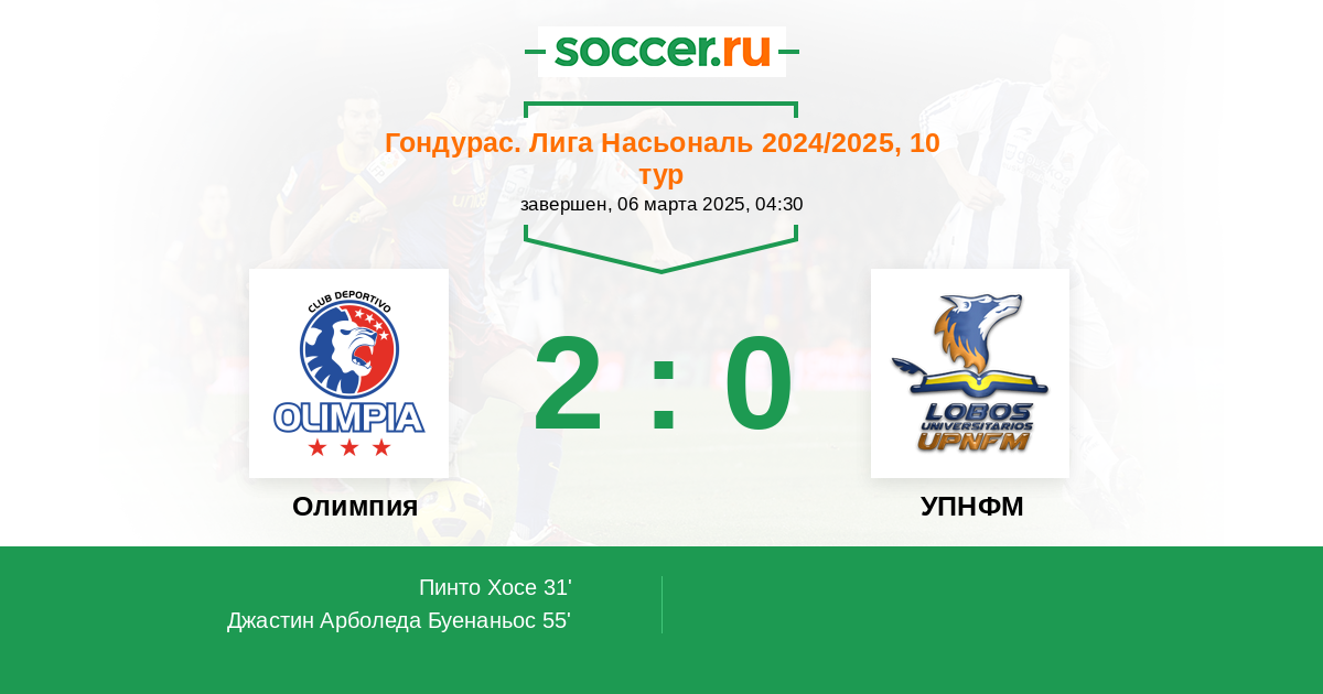 Протокол матча Олимпия против УПНФМ