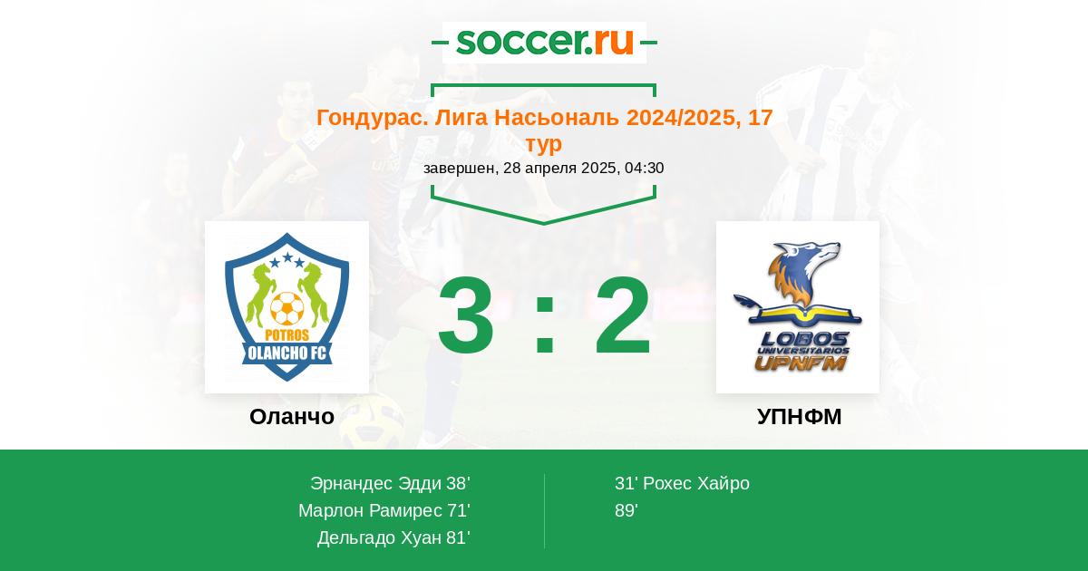 Протокол матча Оланчо против УПНФМ