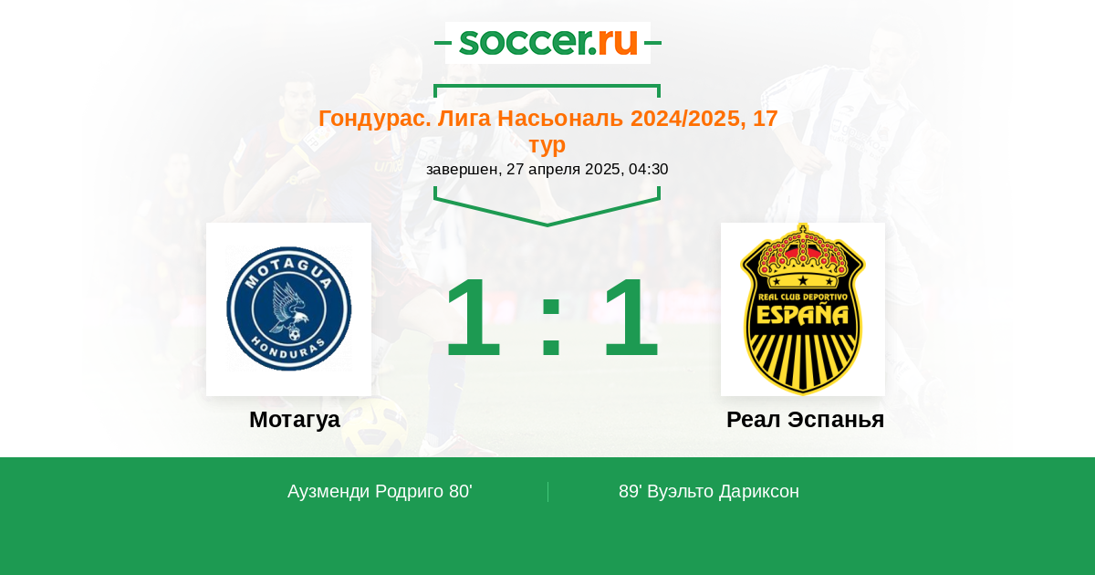 Протокол матча Мотагуа против Реал Эспанья