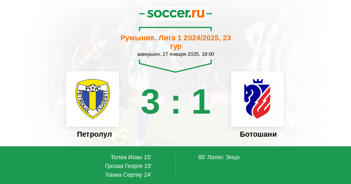 Протокол матча Петролул против Ботошани