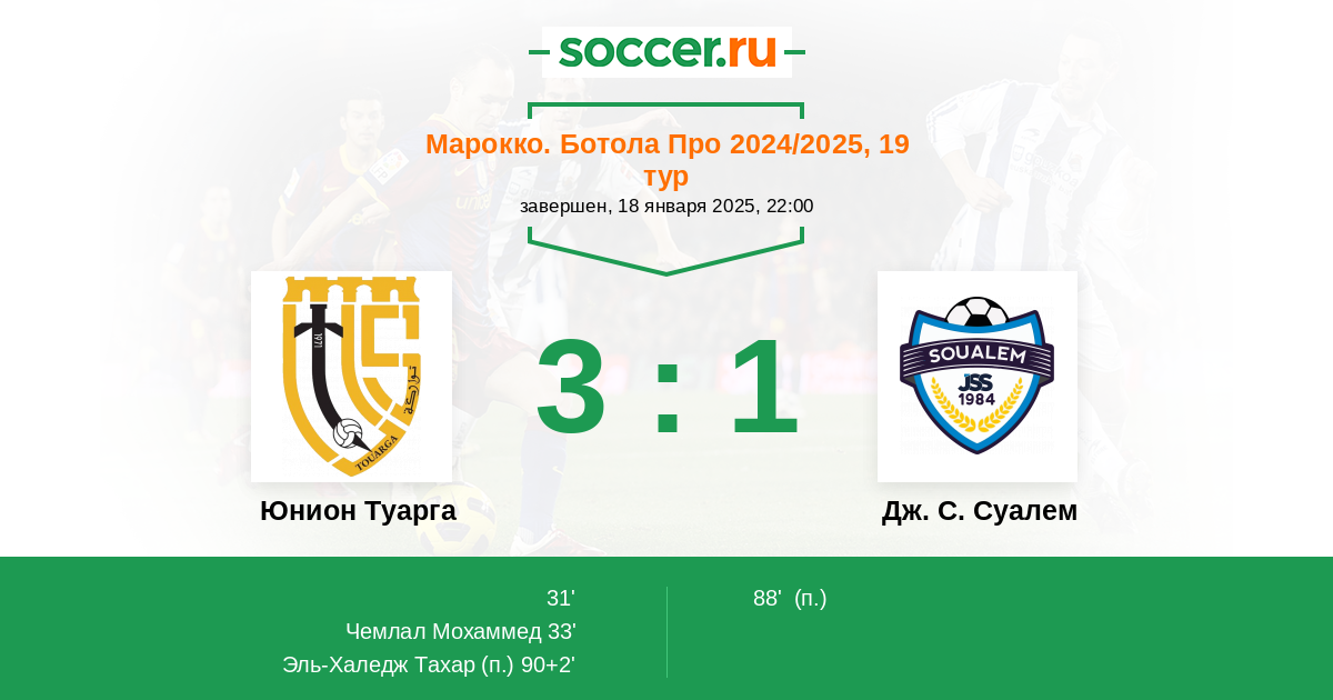 Протокол матча Юнион Туарга против Дж. С. Суалем