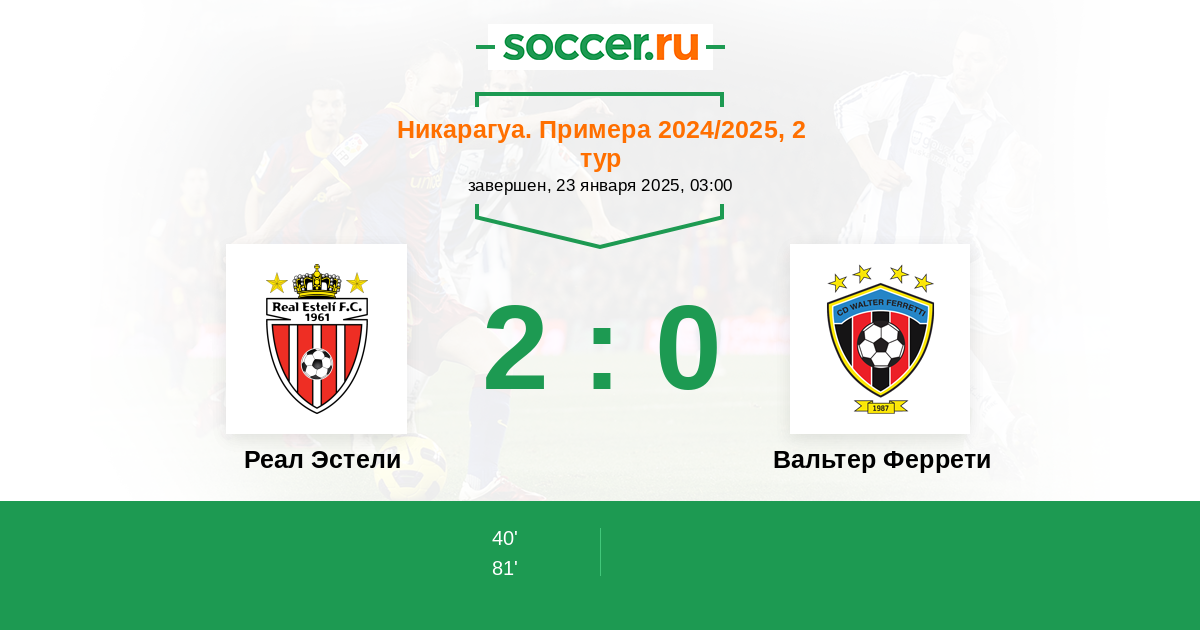 Протокол матча Реал Эстели против Вальтер Феррети