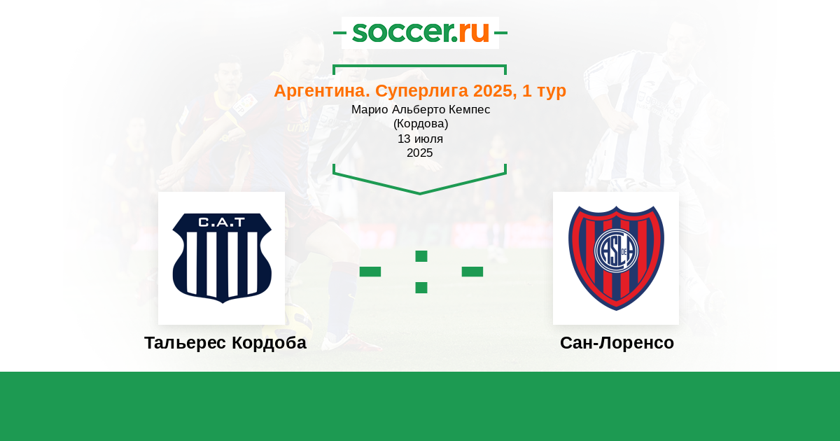 Протокол матча Тальерес Кордоба против Сан-Лоренсо