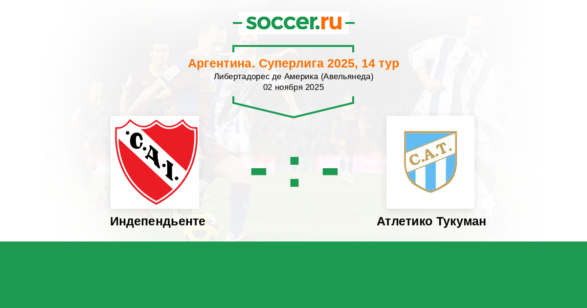 Аргентина. Суперлига 05.11.2023 Атлетико Тукуман Логотип футбольный клуб Атлетико Тукуман (Сан-Мигель-де-Тукуман) 1:2 Логотип футбольный клуб Индепендьенте (Авельянеда) Индепендьенте