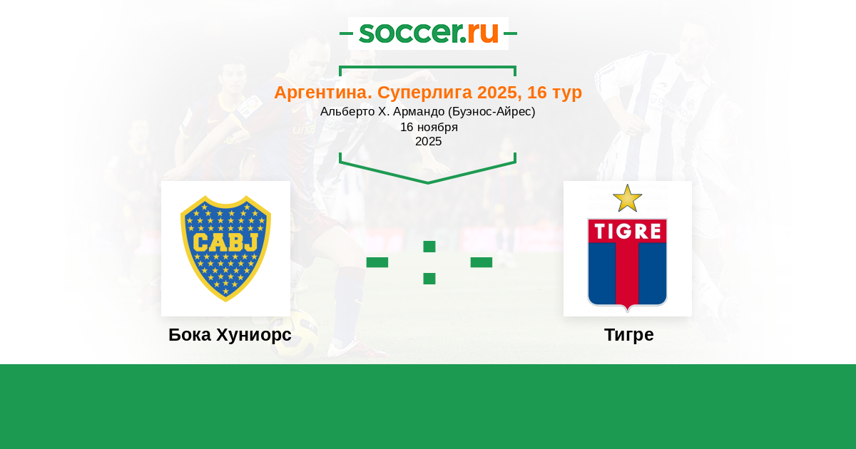 Аргентина. Суперлига 03.10.2016 Тигре Логотип футбольный клуб Тигре (Буэнос-Айрес) 1:1 Логотип футбольный клуб Бока Хуниорс (Буэнос-Айрес) Бока Хуниорс