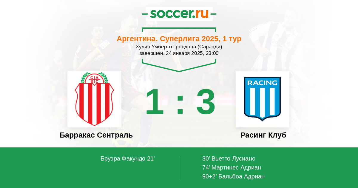 Протокол матча Барракас Сентраль против Расинг Клуб