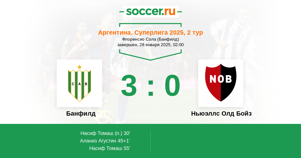 45+1' (2:0) Аланиз Агустин (11) (Насиф Томаш (30))