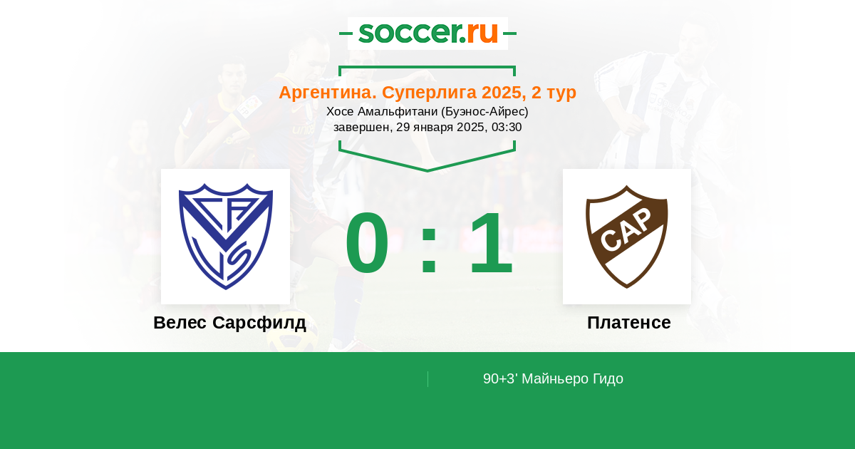Протокол матча Велес Сарсфилд против Платенсе