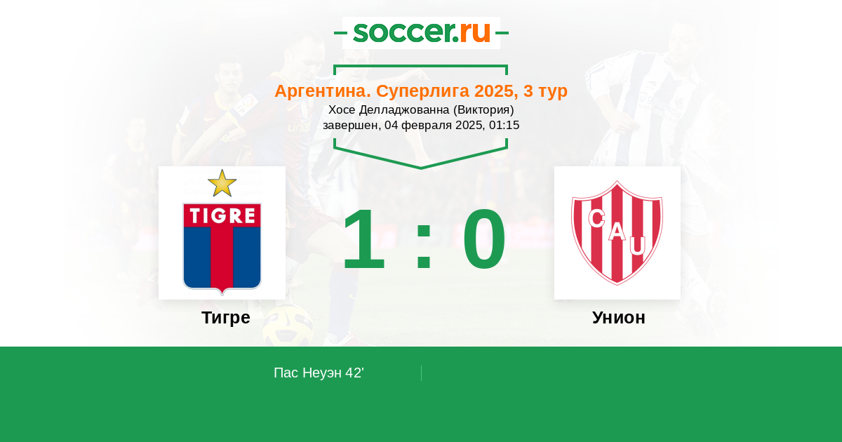 Протокол матча Тигре против Унион