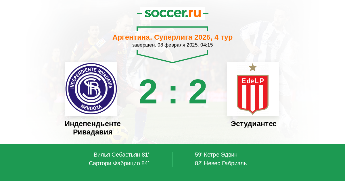 Протокол матча Индепендьенте Ривадавия против Эстудиантес