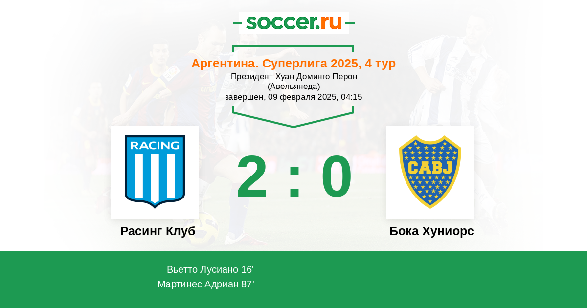 Протокол матча Расинг Клуб против Бока Хуниорс