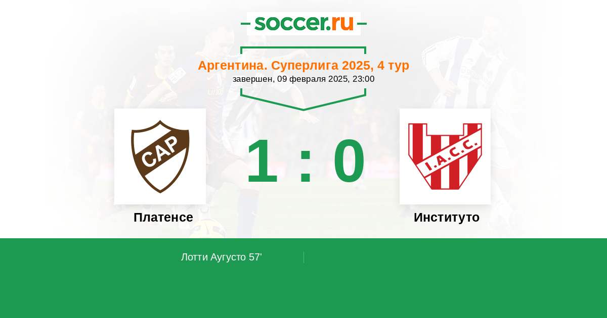 Протокол матча Платенсе против Институто