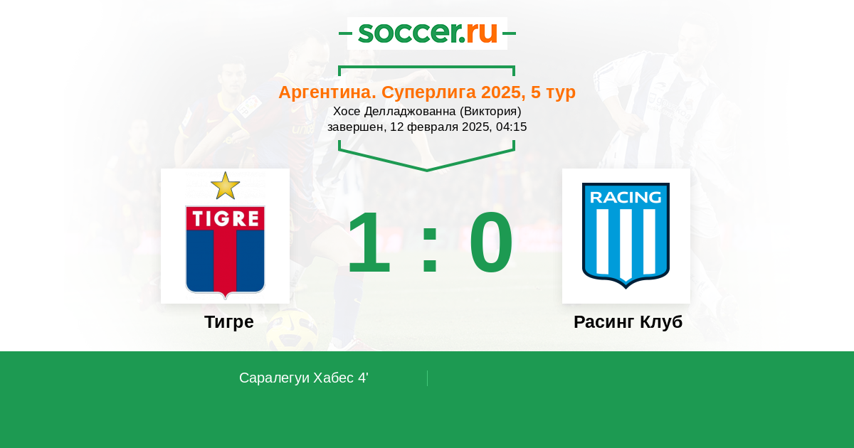Протокол матча Тигре против Расинг Клуб