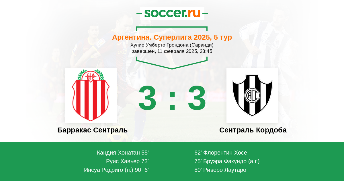 Протокол матча Барракас Сентраль против Сентраль Кордоба