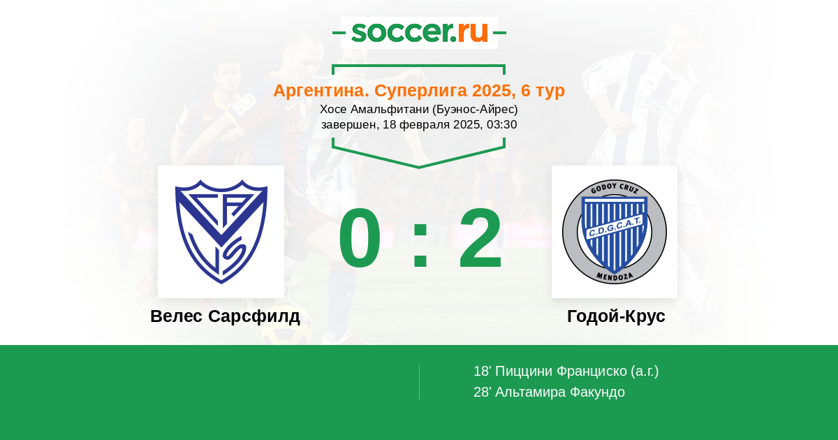 Протокол матча Велес Сарсфилд против Годой-Крус