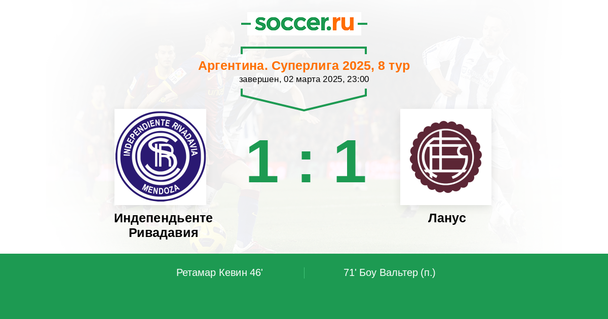Протокол матча Индепендьенте Ривадавия против Ланус