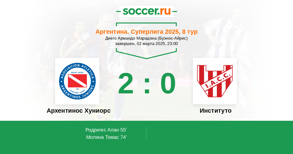Протокол матча Архентинос Хуниорс против Институто