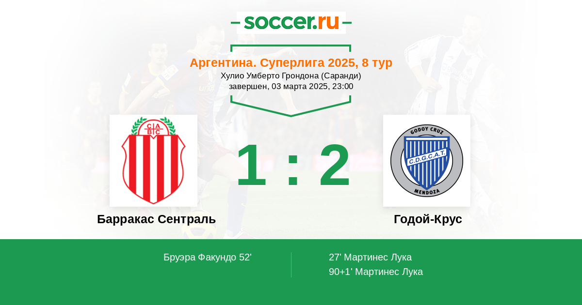 Протокол матча Барракас Сентраль против Годой-Крус