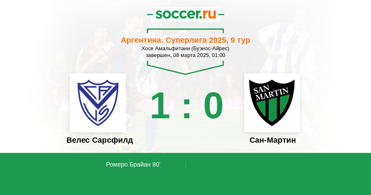 Протокол матча Велес Сарсфилд против Сан-Мартин