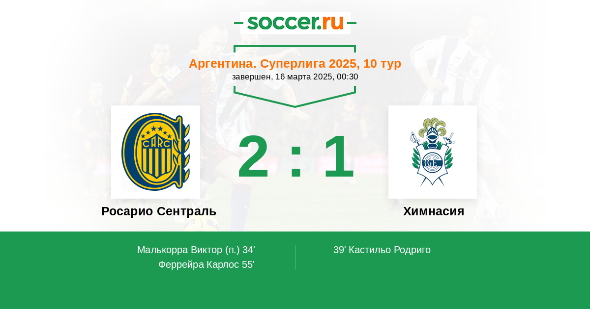 Протокол матча Росарио Сентраль против Химнасия