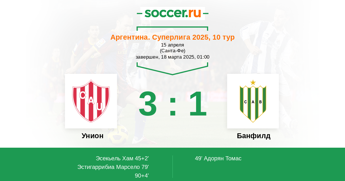 Протокол матча Унион против Банфилд