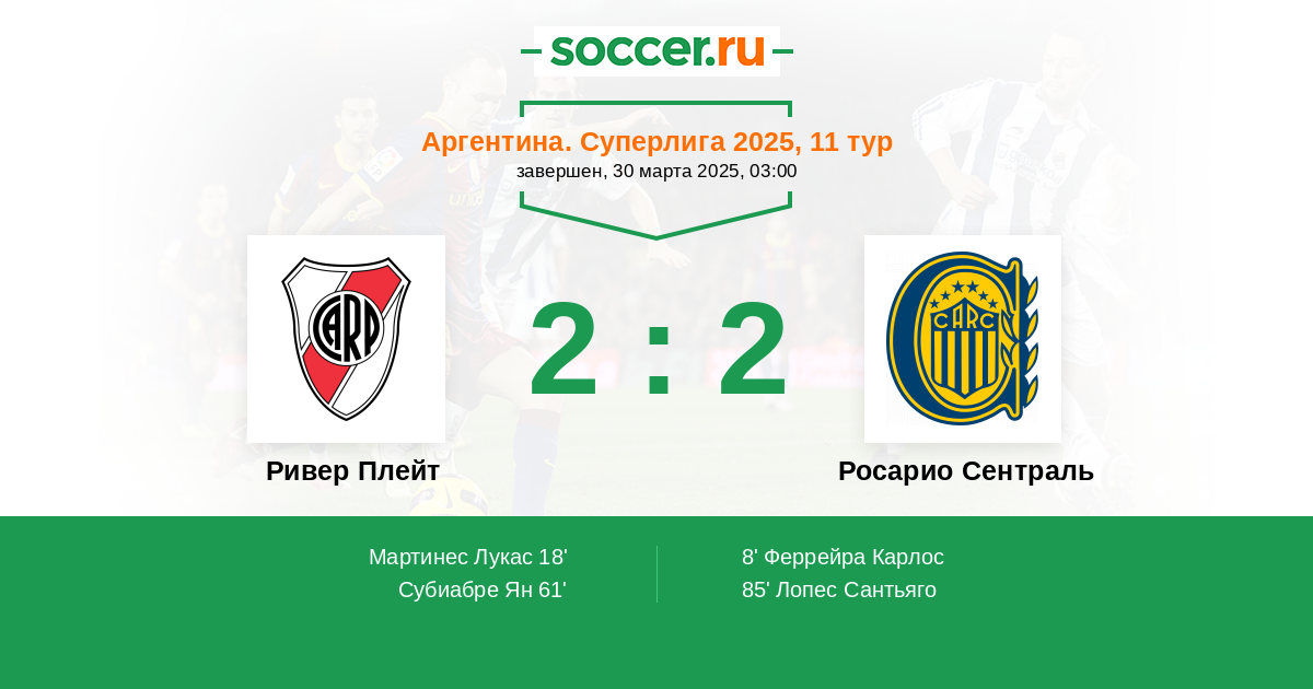 Протокол матча Ривер Плейт против Росарио Сентраль