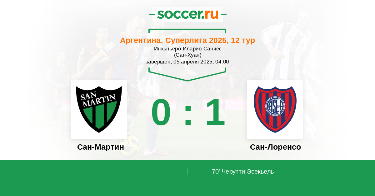 Протокол матча Сан-Мартин против Сан-Лоренсо