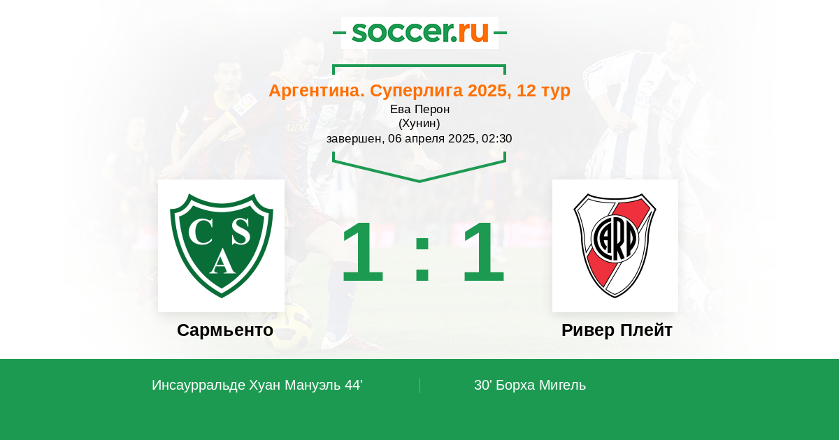 Протокол матча Сармьенто против Ривер Плейт