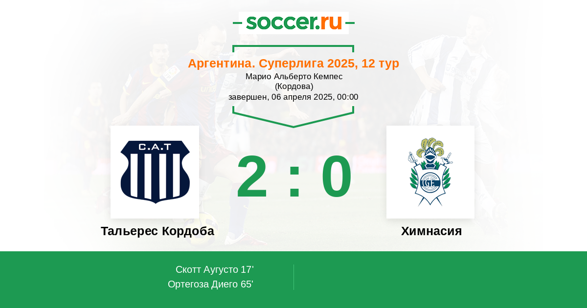 Протокол матча Тальерес Кордоба против Химнасия